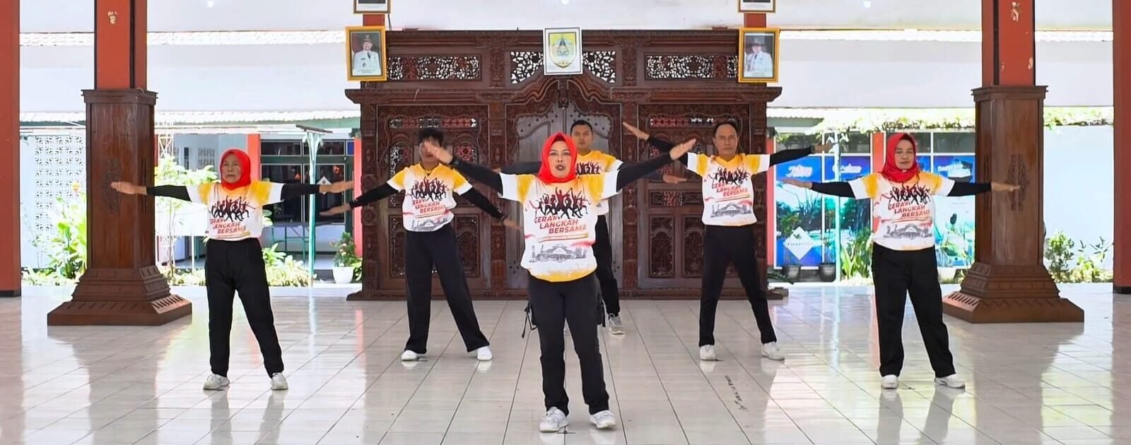 Bergerak berolahraga melangkah bersama – sama menuju pemalang yang sehat, bugar, gembira, dan Bercahaya